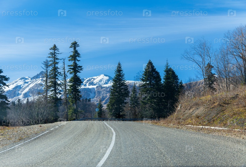 Дорога к снежным вершинам в горах