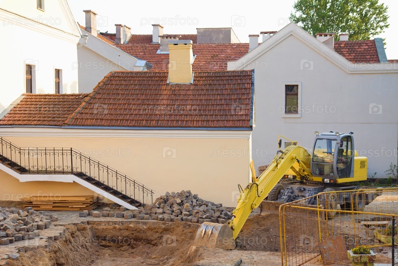 Ремонтные работы в старом дворе. Минск, Белоруссия