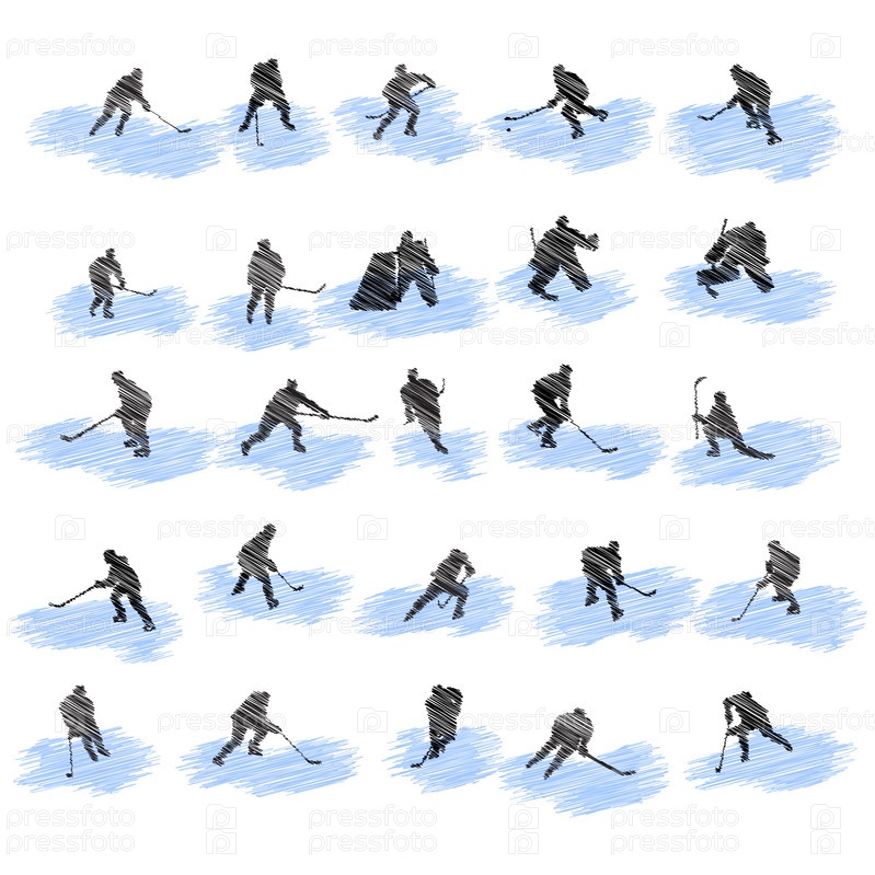 Набор силуэтов игроков в хоккей