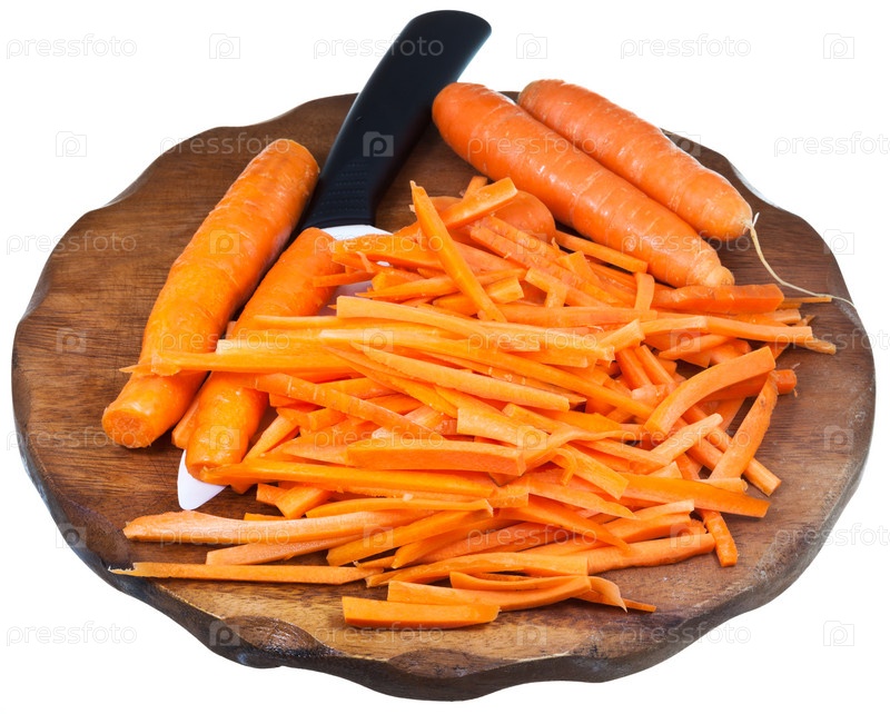 Разделочная доска с ломтиками моркови и керамическим ножом