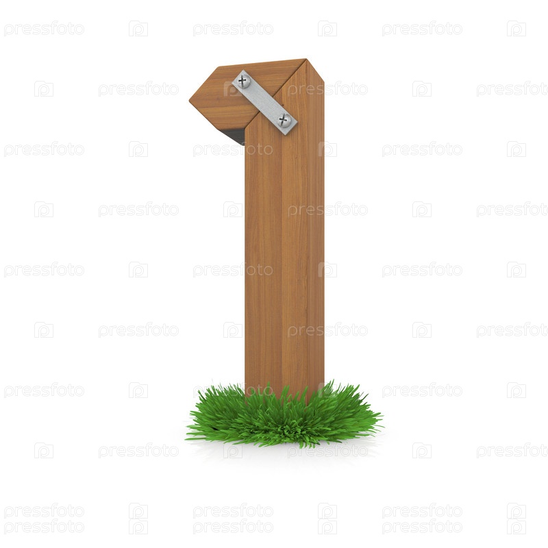 Деревянная цифра один в траве