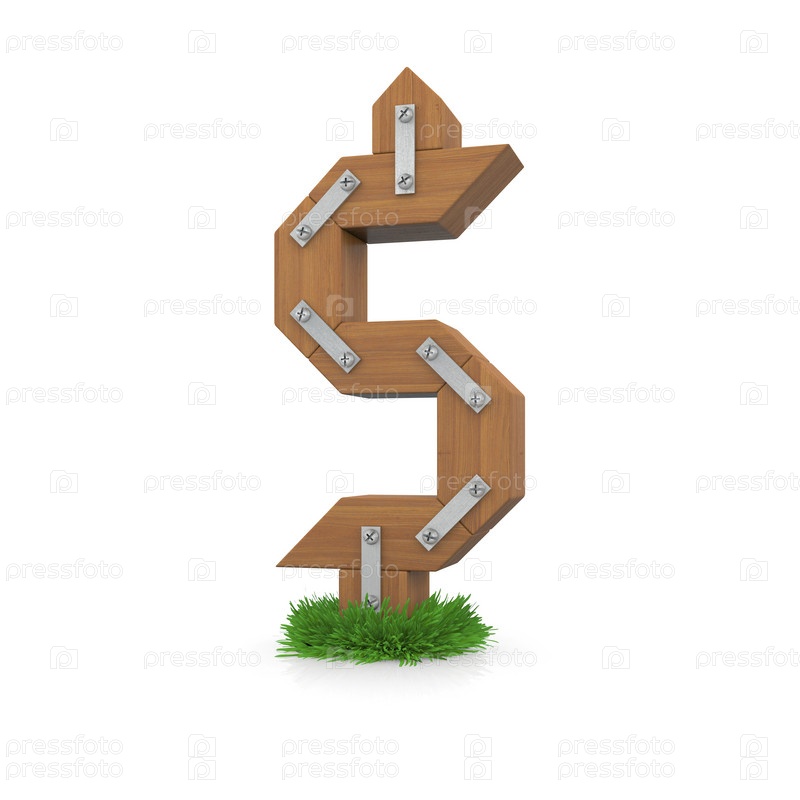 Деревянный знак доллара в траве
