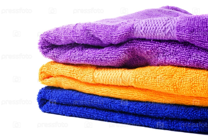 Стопка махровых полотенец на белом фоне