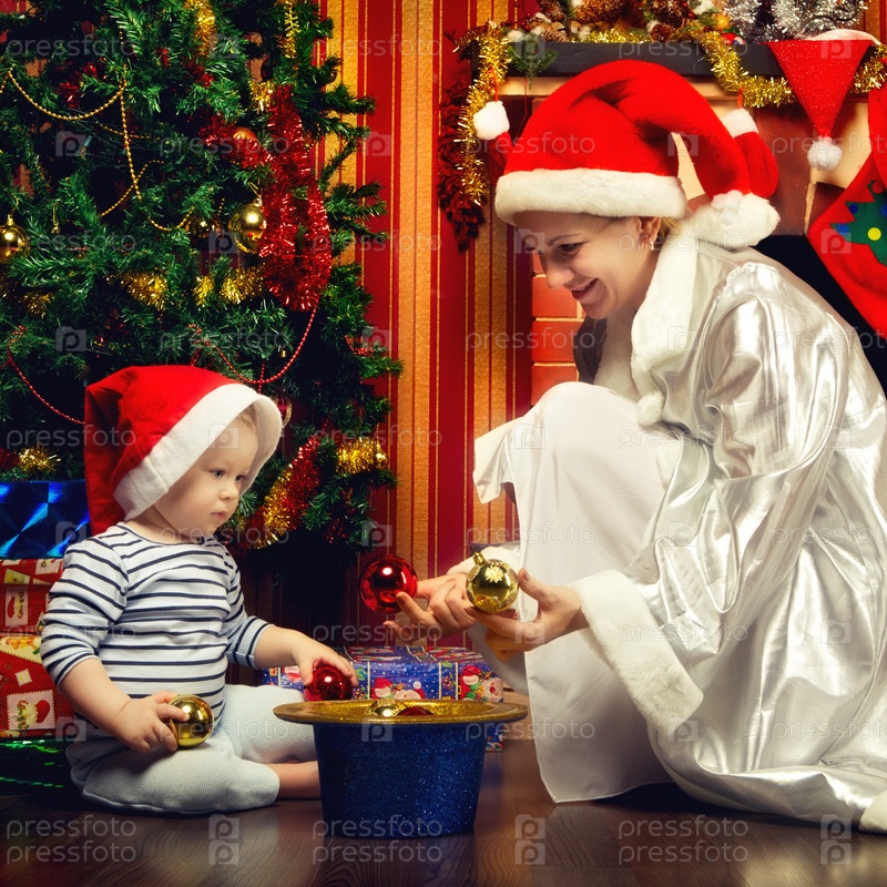 Мать и ребенок у новогодней елки