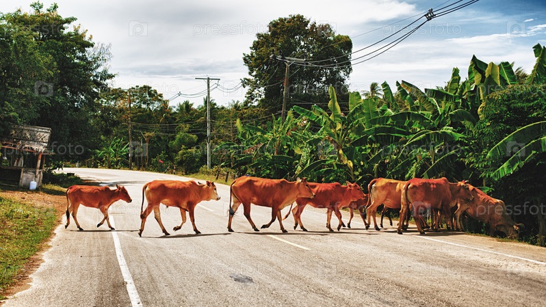 Коровы переходят дорогу