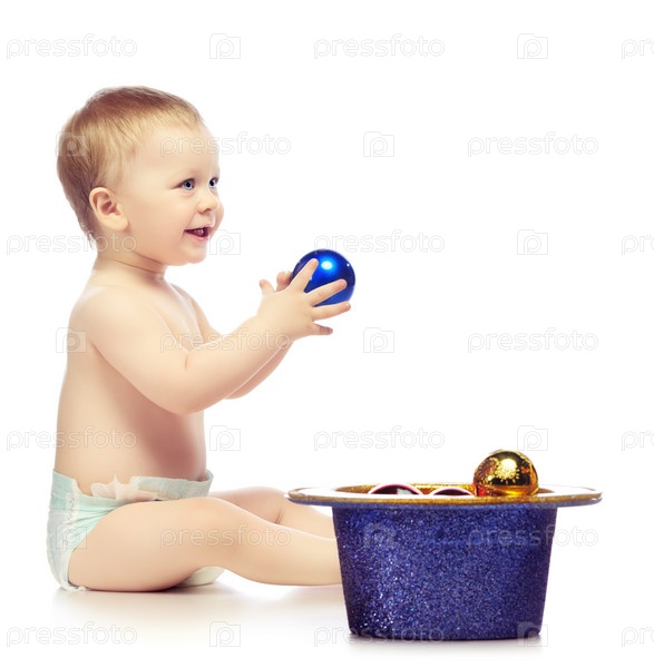 Ребенок с елочными шарами