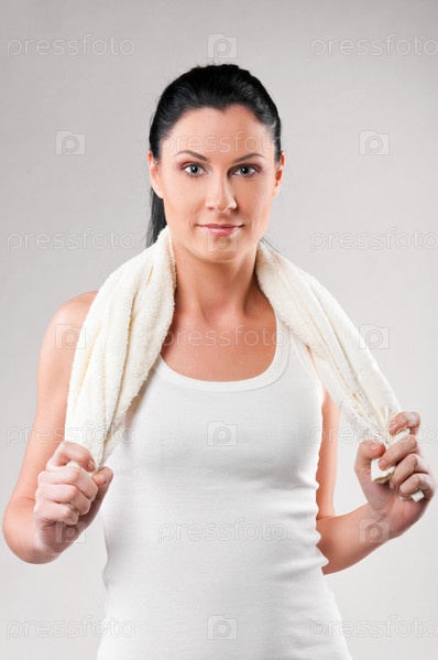 Женщина с полотенцем на плечах