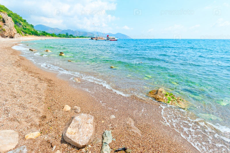 Спокойное бирюзовое море и каменистый берег