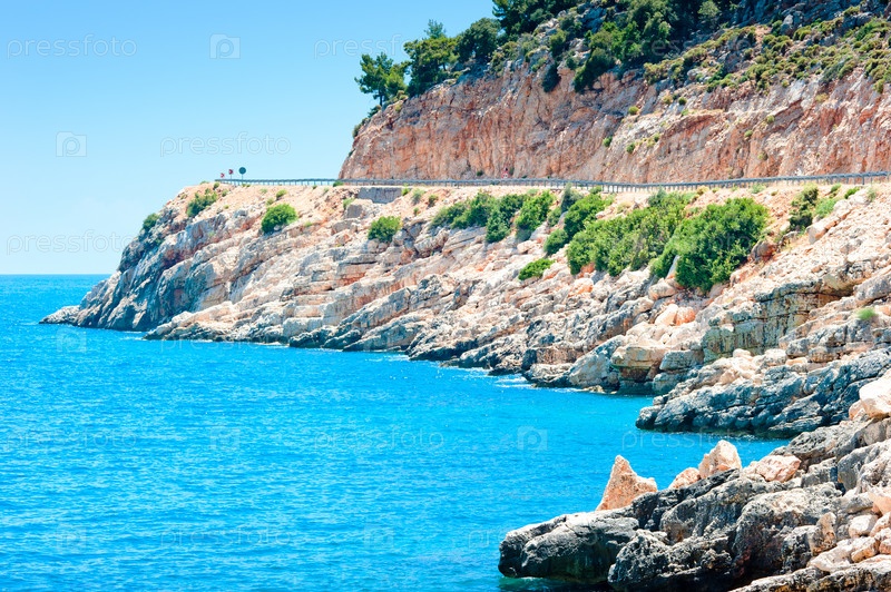 Скалистый пейзаж и спокойное синее море