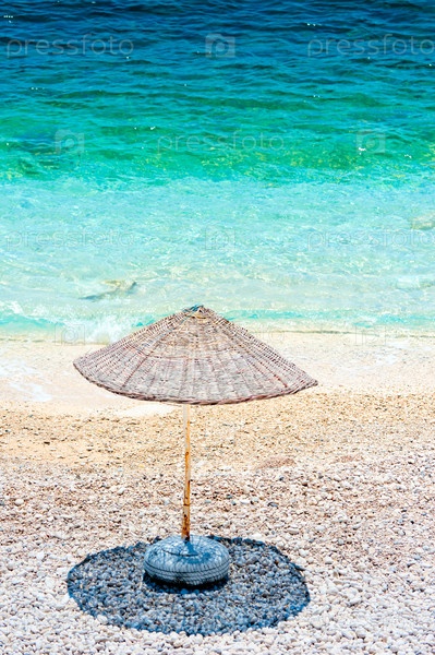 Одинокий пляжный зонт, отбрасывающий тень