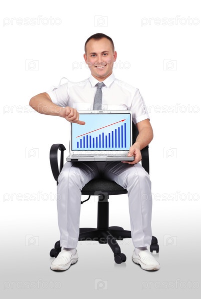Человек и ноутбук с диаграммой