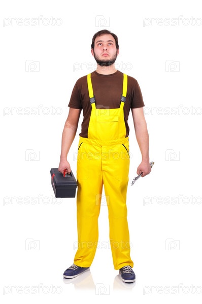 Строитель с гайковертом и ящиком