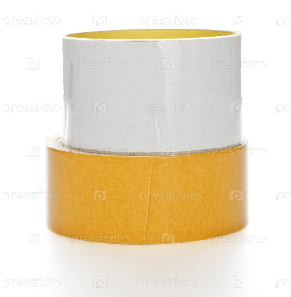 Два рулона клейкой ленты на белом фоне
