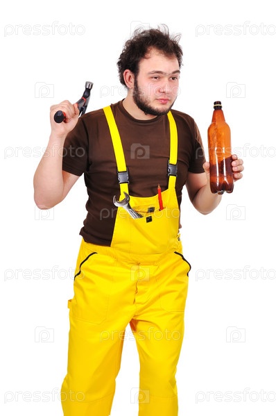 Строитель с пивом