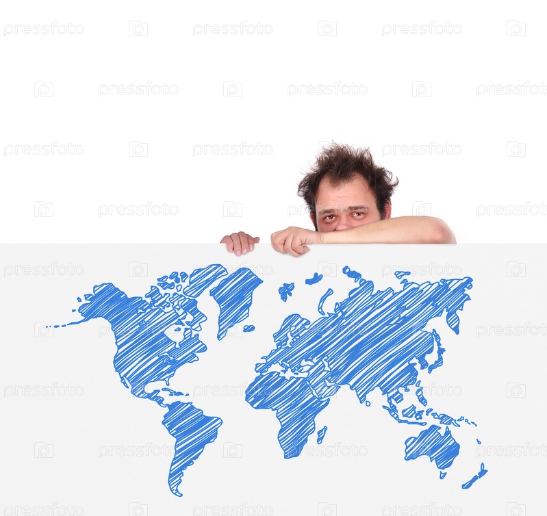 Несчастный мужчина и карта мира