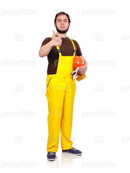 Строитель показывает большой палец