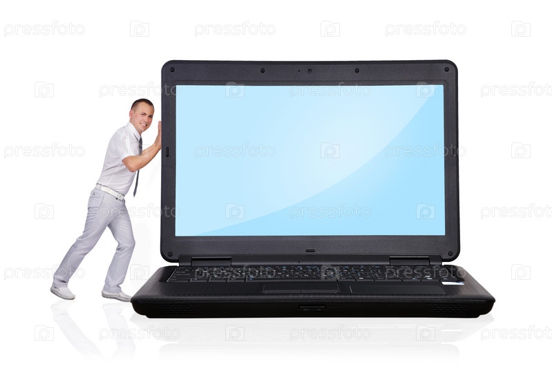 Человек, толкающий ноутбук