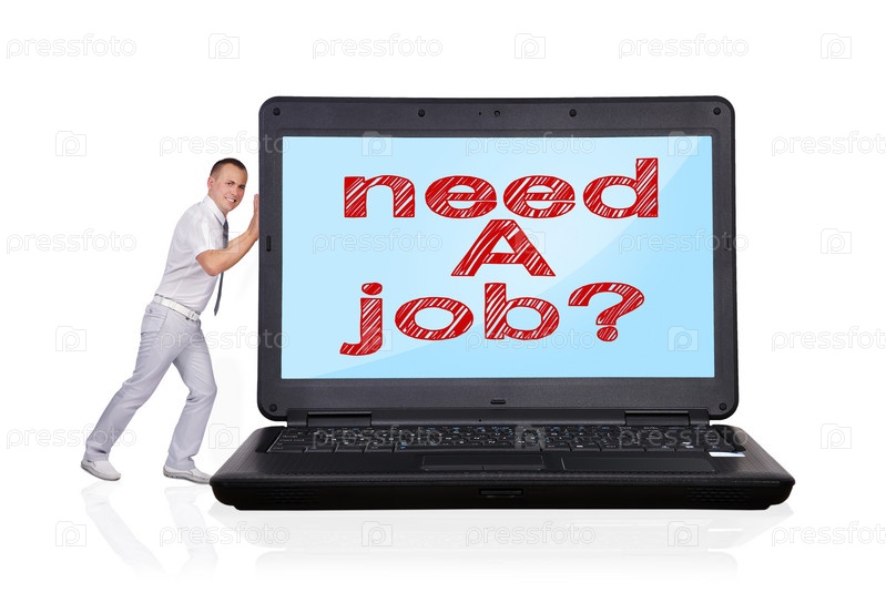 Ноутбук с надписью "Ищите работу?"