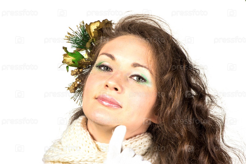 Портрет красивой девушки в зимней одежде на белом фоне
