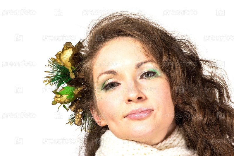 Портрет красивой девушки в зимней одежде на белом фоне