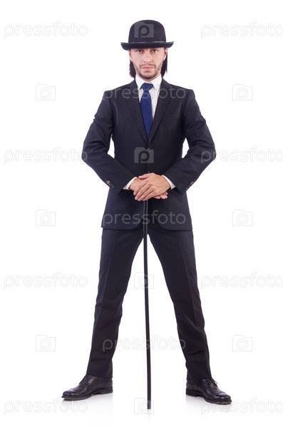 Мужчина с тростью на белом фоне