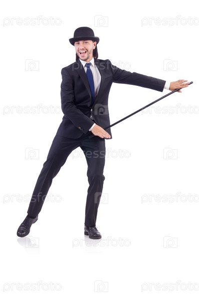Мужчина с тростью на белом фоне