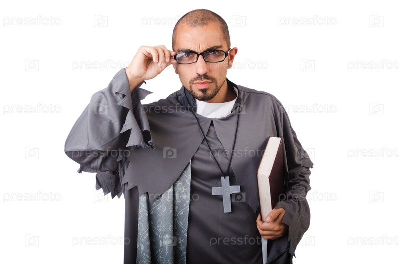 Молодой священник, изолированный на белом