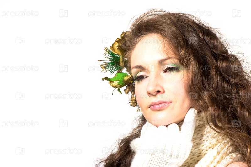 Портрет красивой девушки в зимней одежде на белом фоне