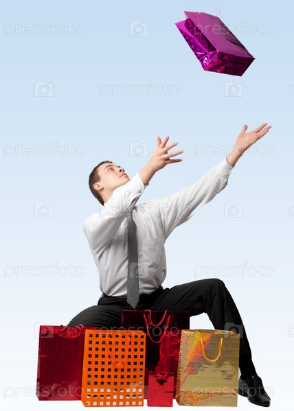 Красивый молодой человек с подарочными пакетами