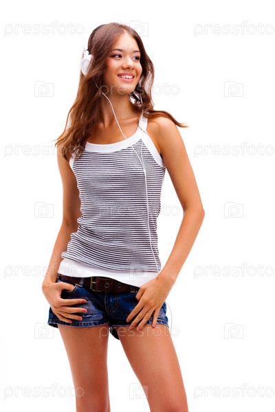 Счастливая девушка в наушниках