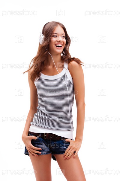 Счастливая девушка в наушниках