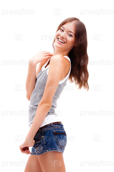Девушка стоит на белом фоне