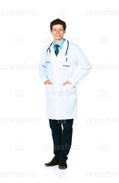Портрет улыбающегося врача на белом фоне