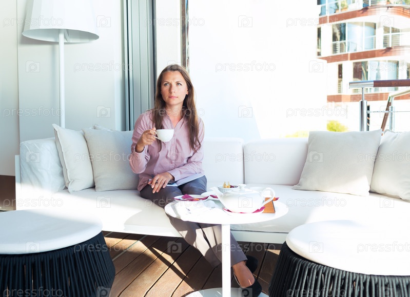 Деловая женщина пьет кофе