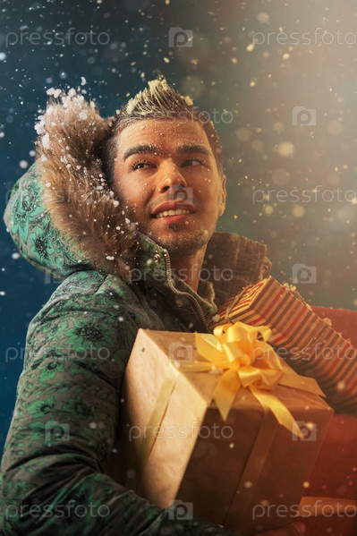 Радостный мужчина с подарками