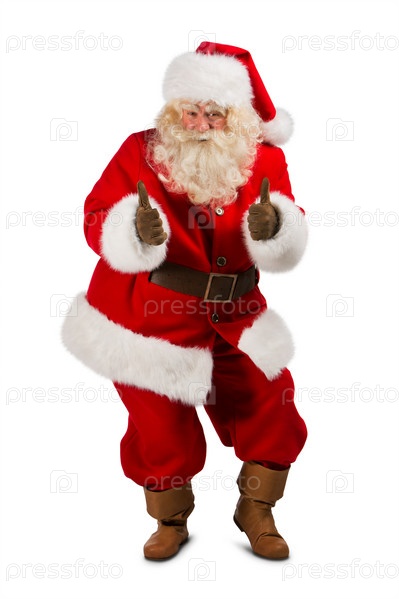 Санта-Клаус показывает большие пальцы, изолированный на белом фоне