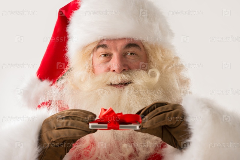 Портрет Деда Мороза с элктронным устройством с лентой