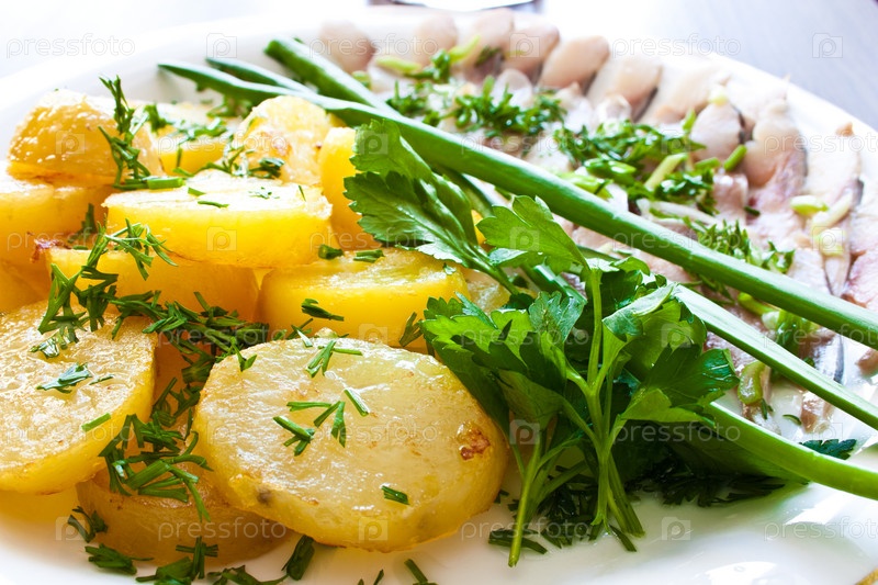 Картофель с сельдью и зеленью