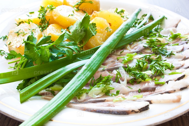 Картофель с сельдью и зеленью