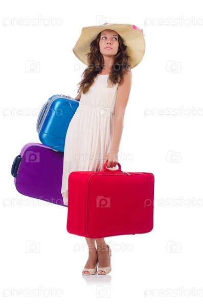 Женщина собирается на летние каникулы, изолированная на белом
