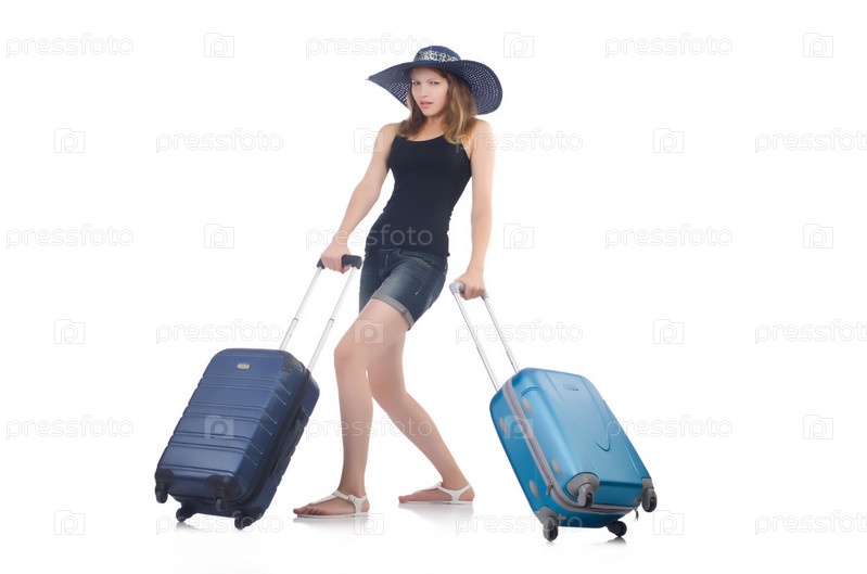Женщина собирается на летние каникулы, изолированная на белом