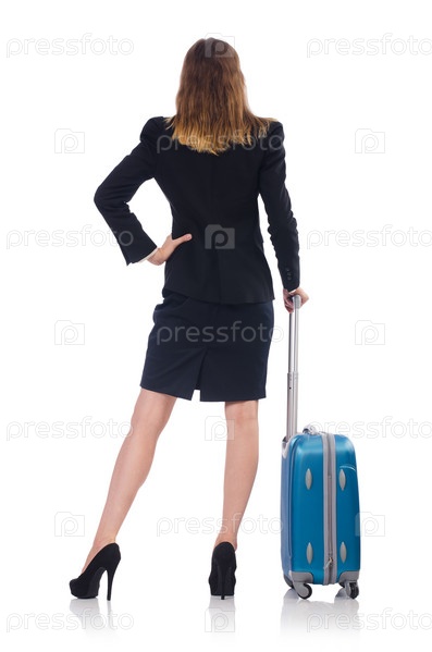 Женщина собирается на летние каникулы, изолированная на белом