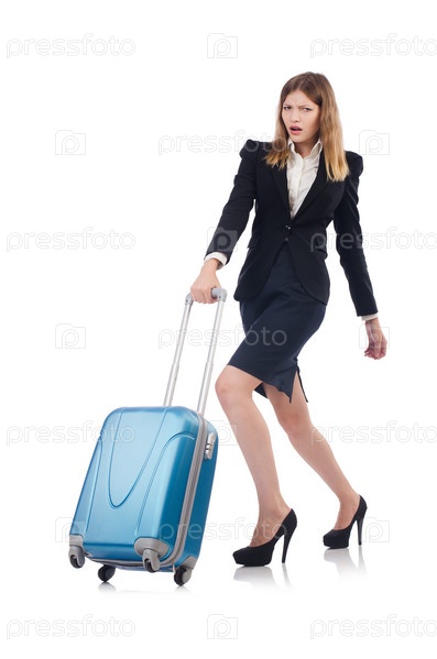 Женщина собирается на летние каникулы, изолированная на белом