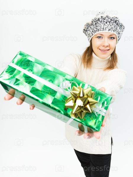 Очаровательная девушка держит подарок