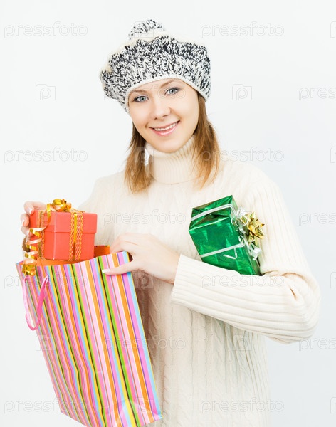 Очаровательная девушка держит подарок