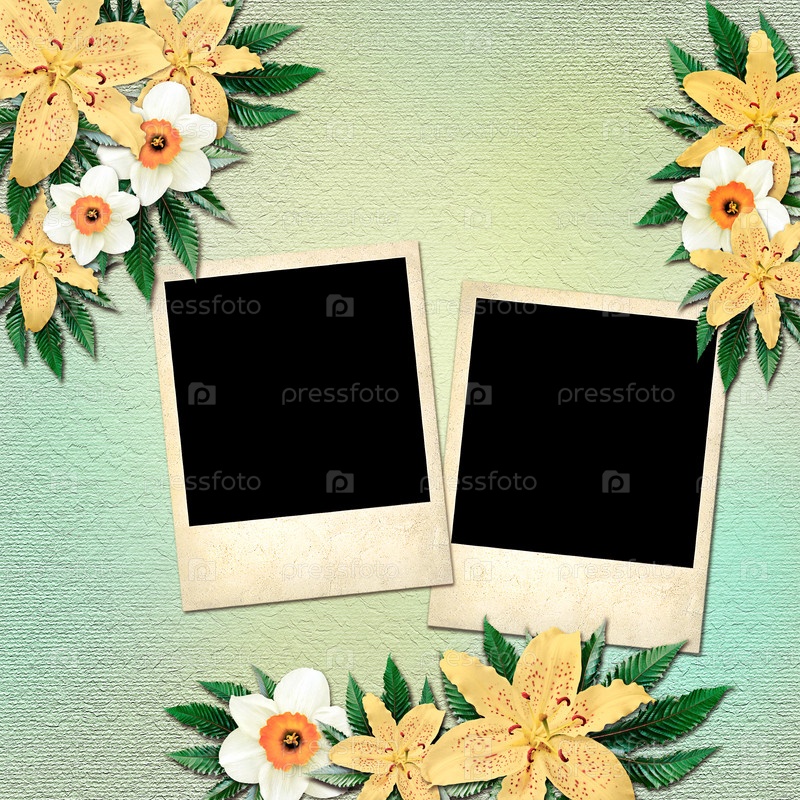 Фотографии в стиле полароид на фоне старинных цветов