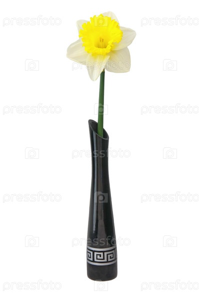 Нарцисс в черной вазе на белом фоне