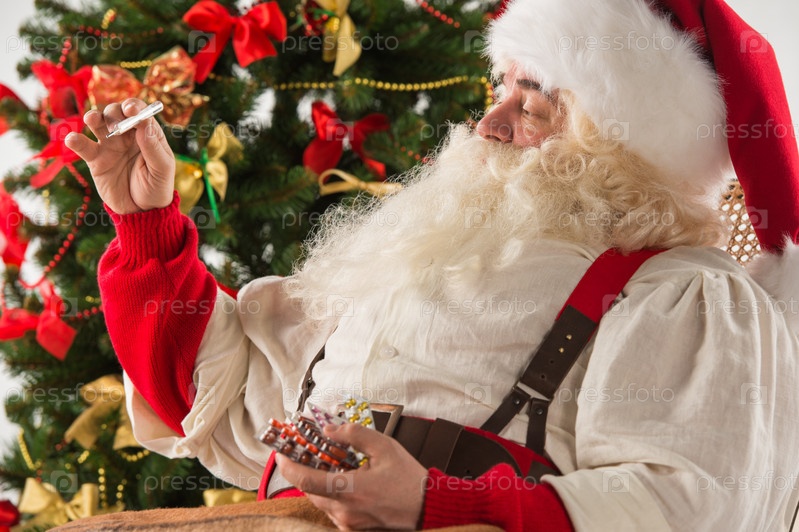 Удивленный Санта-Клаус измеряет температуру