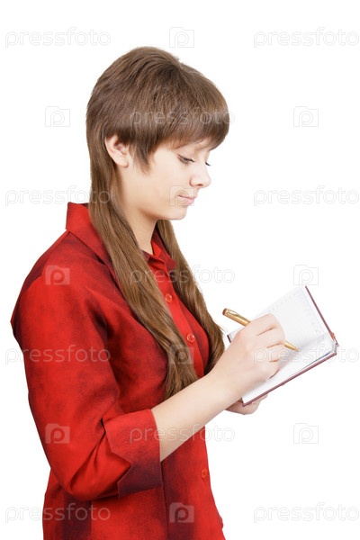 Молодая девушка с ежедневником в руках
