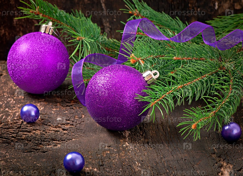 Рождественская открытка с шарами на старом деревянном столе